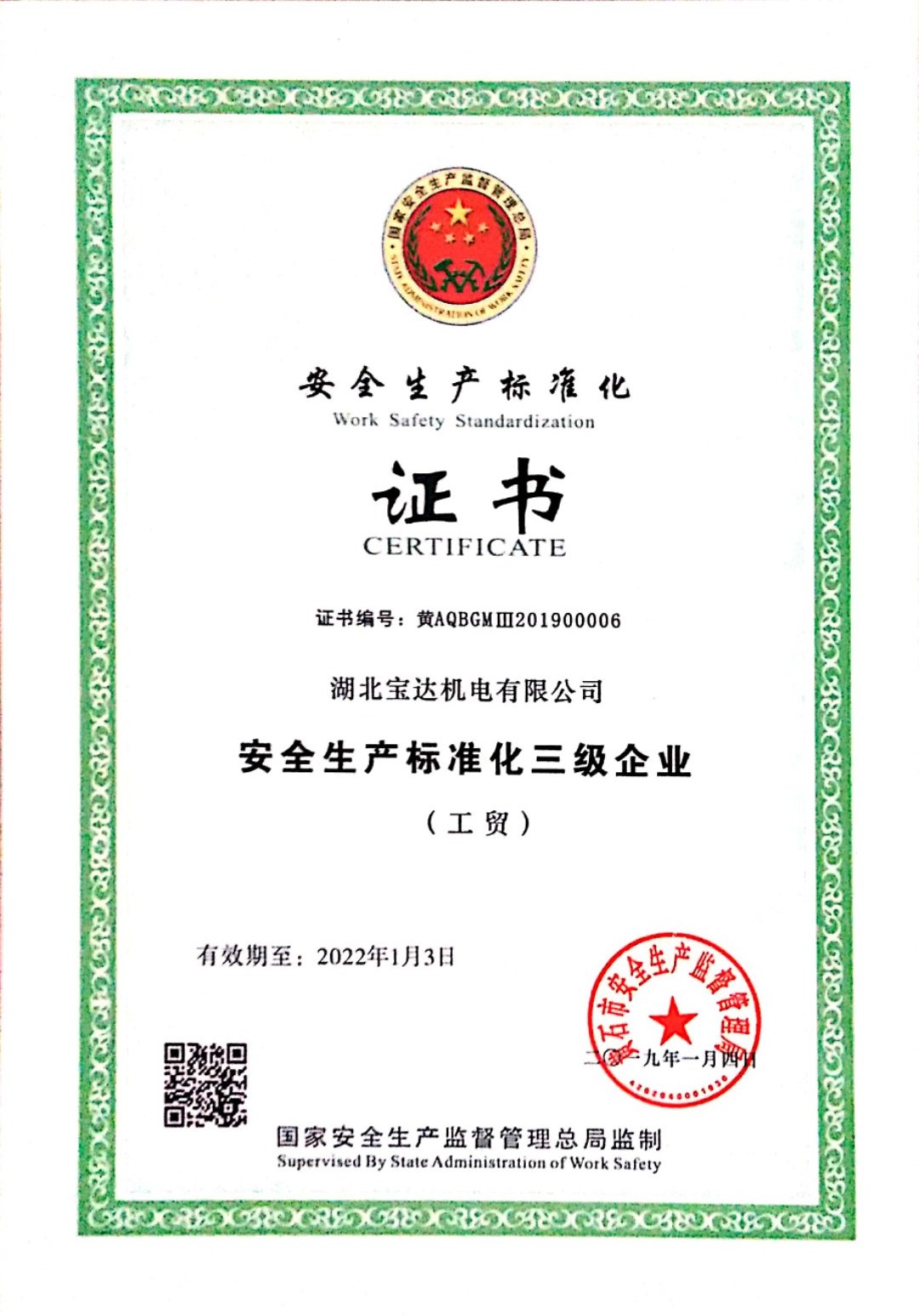 品質(zhì)對于一個生產(chǎn)企業(yè)至關(guān)重要,我們視產(chǎn)品質(zhì)量為企業(yè)的生命。為更好的與市場接拋,占領(lǐng)未來市場,使“寶達”系列產(chǎn)品的可靠性得到消費者的充分信任,我們積極致力于企業(yè)產(chǎn)品質(zhì)量認證,通過CE認證。